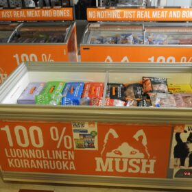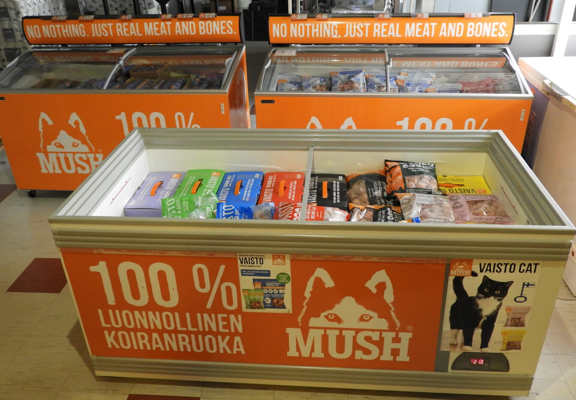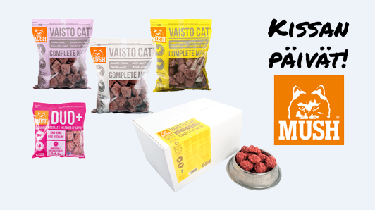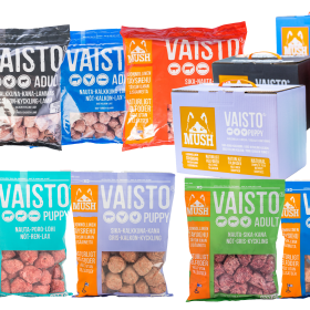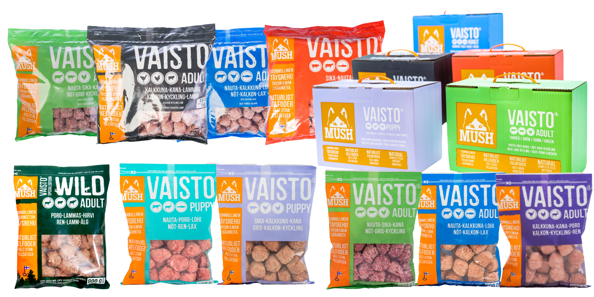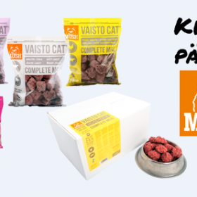KOIRILLE JA KISSOILLE runsas valikoima VAISTO täysravintoja, BASIC-lihoja ja luita, FODAX raakaruokaa, MURREN MURKINAN raakalihoja sekä kotimaisia VAINU-kuivaherkkuja.